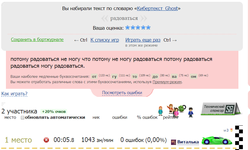 [22:58:58] <al1as> Даже чат на клавогонках прокачивает клавобойца!