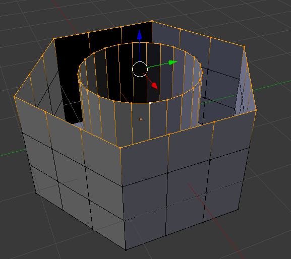 [03:23:19] <Натаны4> un4given, 1) добавляем цилиндр 24 вершины радиусом 1; 2) добавляем второй, вершин 6, R 2; 3) удаляем у обоих верхнюю грань; 4) внешнему 6-граннику добавляем 2 разреза; 5) соединяем фигуры в одну; 6) выделяем верхние вершины; 7) пробуем соединить...