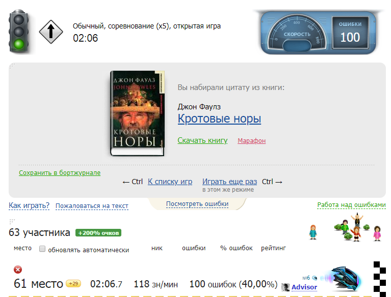 [00:16:40] <Натаны4> Pcholka, да, топ по пробегу в безошибке, как в моём одноимённом конкурсе: https://klavogonki.ru/forum/general/1749