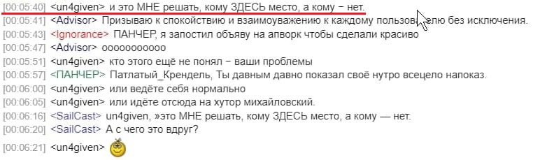 [00:28:46] <jemcik> Кибертаксист, да, когда был глюк и un4given жестко стебался с того, что его не смогли забанить и писал в чат