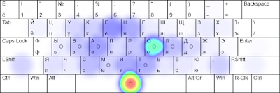 Плавное увеличение от мизинцев к указательным и «провал» в центре способствуют высокой эргономике: сильные пальцы работают больше слабых, а перемещения рук минимальны. Также наблюдается V-образный тренд интенсивности от краёв к центру (выбивается разве что буква Е), что соответствует естественному расположению кистей рук в направлении от плечей к центру клавиатуры.