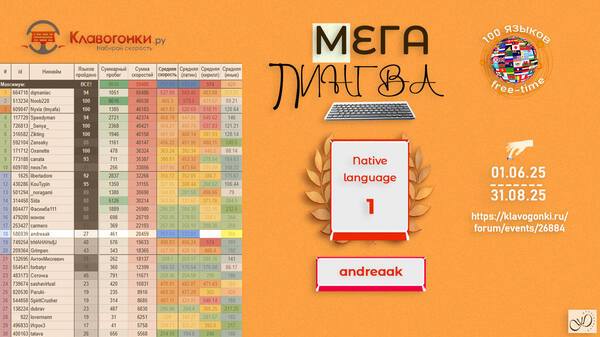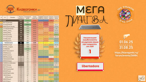 [31.08.25 в 23:59] МЕГАлингва 2025! (free-time; 01.06.25 - 31.08.25)