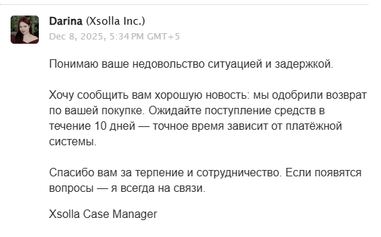 сразу же отписаться в службу поддержки КГ - https://klavogonki.ru/contact/?utm_source - и обязательно сделать скрины до и после отправки можно отписаться в этой теме - https://klavogonki.ru/forum/problems/21862/ - чтобы в дальнейшей переписке с Иксолой предоставить ссылку на свое сообщение до кучи можно Даниэлю в ЛС отписаться и сделать скрин, как еще один пруф для Иксолы, что вы обращались в саппорт КГ (я Даниэлю отписался 27.11.2025, сообщение даже не прочитано) в письме к сапорту Иксолы так же можно приложить ссылку на эту тему - https://klavogonki.ru/forum/problems/21870/ - чтобы вы могли более наглядно объяснить суть проблемы в письме дайте понять, что требуете возврат средств В первый же день писать в Иксолу, наверное, не стоит. Надо дать время, чтобы обращения в службу поддержки КГ успели настоятся несколько дней. скрытый текст… |