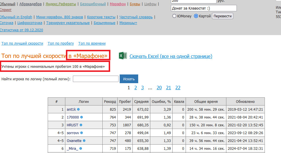 Условные топ-500 словарей по сумме пробегов всех игроков.