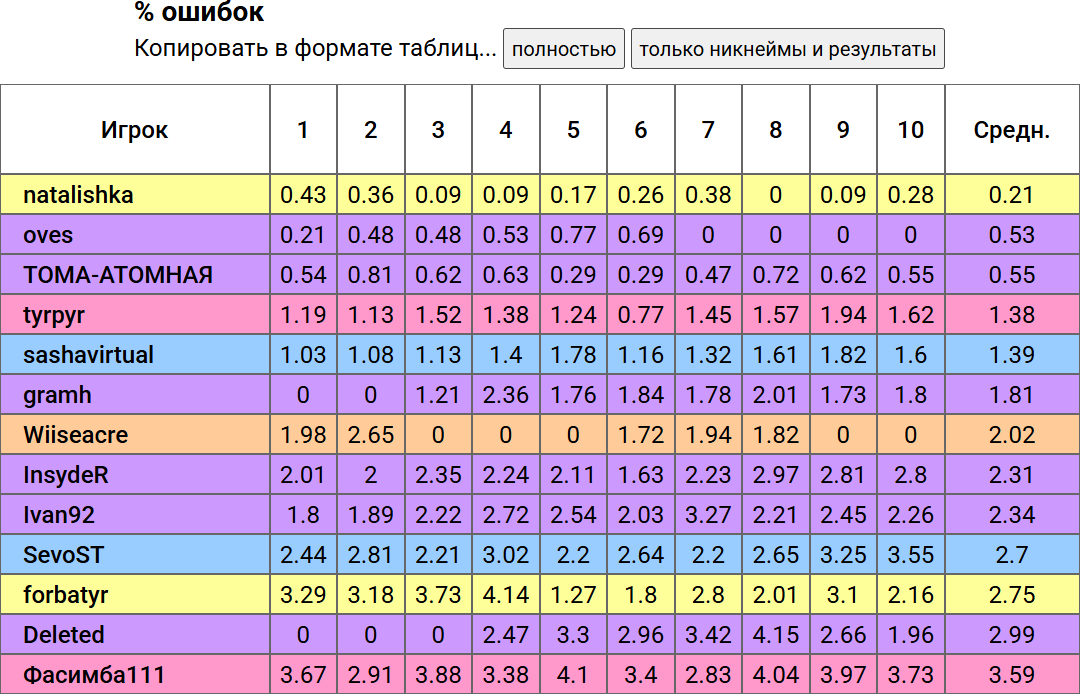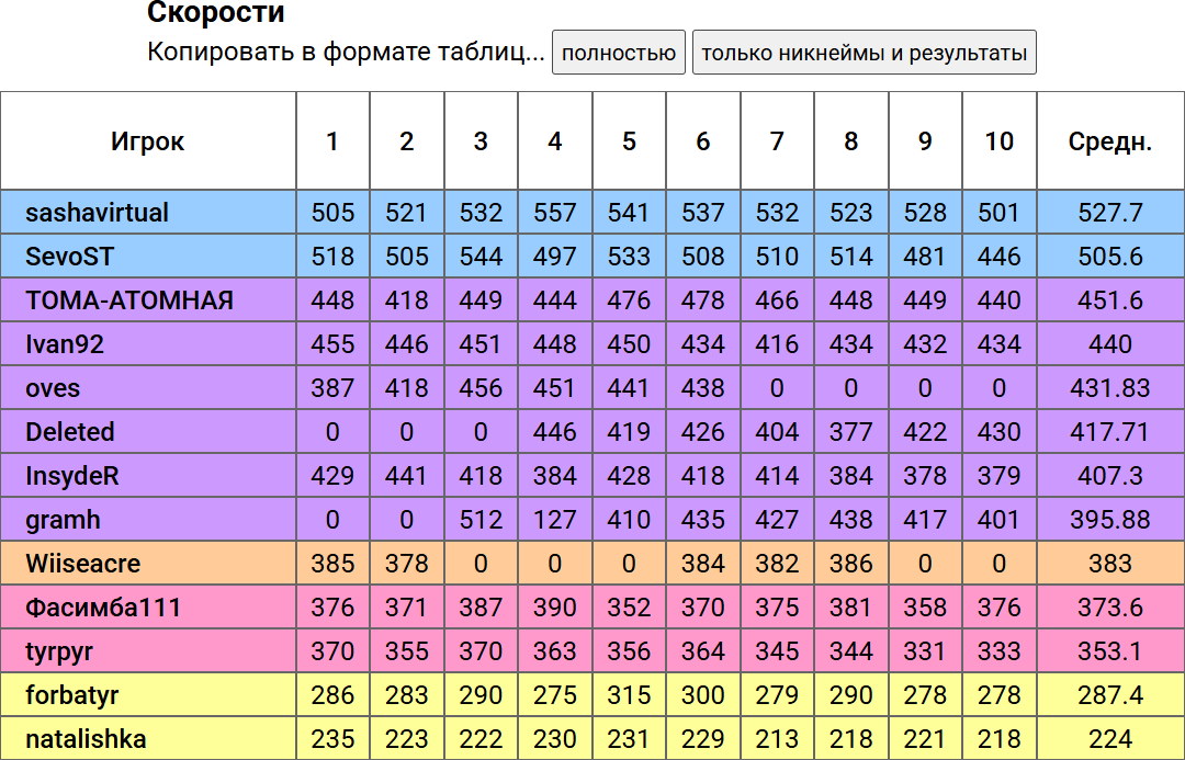 скорость:  точность:  10й заезд не досохранился, если были рекорды пишите