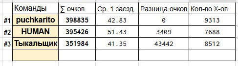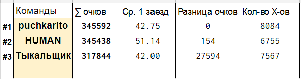 Команда HUMAN  наваливает вперёд! За день 13 041 МЕТРОВ! Разрыв составляет 8 198 метра!  Возможно puchkarito копят силы? Возможно готовят что-то, о чём знает команда Тыкальщик ЗЫ: поэтому и держатся на расстоянии 57 637 метров? Эхх, а как здорово они начинали ЗЫ2: палец быть тёплым  Последний раз отредактировано 21 октября 2018 в 09:38 пользователем БРЕЗЕНТ