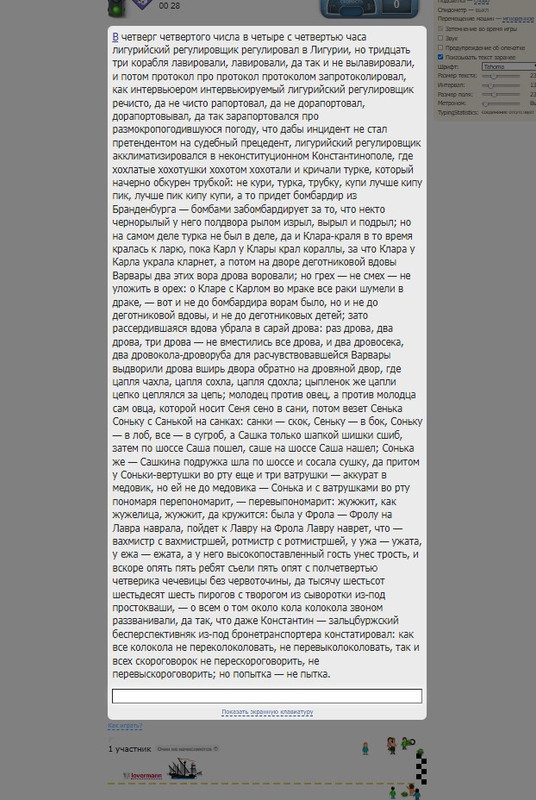Nowhereman42nd писал(а): Словарь как словарь, просто непривычный. Благо, знакомые скороговорки там есть, и символов немного меньше. мне тоже кажется, что Кострома сложнее Лигурии (по крайней мере, для фываолдж статики и для моей динамики точно, может, для кого-то она и попроще окажется). скрытый текст… Лигурия писал(а): HelixOfTheEnd писал(а): топа по Костроме не планируется? (может, в будущем если она будет ещё добавляться?). Может отдельный, а может и скрещенный, ещё не придумал. можно и топ по сумме двух сделать :thinking:. хотя это уже может быть не так и актуально, не все ездят оба словаря. Последний раз отредактировано 5 августа 2022 в 17:14 пользователем HelixOfTheEnd