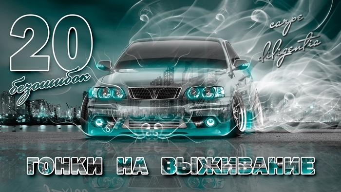 Учётная запись ведущего – CrashRace. Чтобы получать приглашения в заезды, добавьте его в друзья. Автор идеи: Всего_хорошего. Дизайн: Сударушка. Требования для участия, получения призовых очков и картинокУчаствовать в турнире могут игроки всех рангов. Ранг участника определяется по рекорду в Обычном режиме или по рекорду в Безошибочном режиме, если он выше рекорда в Обычном режиме. Призы и картинки выдаются при выполнении одного из двух требований к пробегу: • в Обычном режиме – не менее 1000 текстов и в Безошибочном режиме – не менее 200 текстов или• в Безошибочном режиме – не менее 1000 текстов РегламентТурнир проводится по пятницам в 20:45 МСК, состоит из 20 заездов в Безошибочном режиме. Тайм-аут первого заезда – 2 минуты, остальных – 45 секунд. Лимит по времени на заезд – 90 секунд. Система подсчёта результатовВ каждом заезде участникам начисляются баллы в соответствии с занятыми местами: • 1–5 место – по 9 баллов; • 6–10 место – по 8 баллов; • 11 место и ниже – по 7 баллов. Места распределяются по скорости без учёта допущенных ошибок. Если участник не допустил ни одной ошибки, ему дополнительно начисляется 1 балл. Таким образом, за один заезд можно получить максимум 10 баллов, а за двадцать заездов – максимум 200 баллов. Если участник не соответствует требованиям к пробегу для получения призов, то баллы ему не начисляются, занятые им места не учитываются при расчёте баллов другим участникам. Победитель определяется по сумме набранных баллов. При одинаковом количестве баллов выше в итоговой таблице оказывается участник, у которого больше доездов. При одинаковом количестве баллов и доездов выше в итоговой таблице оказывается участник, который допустил меньше ошибок. При одинаковом количестве баллов, доездов и ошибок выше в итоговой таблице оказывается участник, у которого выше скорость. Призы и наградные картинкиДля получения призов и наградных картинок в бортжурнал необходимо попасть в зачёт, то есть набрать 80 и более баллов. Участники, набравшие менее 80 баллов, призы и картинки не получают. 1. Первые три места – наградные картинки в бортжурнал. 2. Призы: • 1 место – 5000 очков; 2 – 4000; 3 – 3000; 4 – 2000; 5 – 1000; с 6 места с уменьшением на 100 очков; • лучший в ранге – 1000 очков при одновременном выполнении двух условий: 1) есть по крайней мере ещё один участник в данном ранге, набравший 80 и более баллов; 2) участника не обошёл игрок, ранг которого ниже; • 1000 очков за 20 доездов при средней скорости не менее 75% от рекорда в Безошибочном режиме для всех рангов до супермена и не менее 65% для кибергонщиков и экстракиберов; • 500 очков за 20 доездов с любой скоростью; • 1000 очков за один или несколько рекордов при пробеге в Безошибочном режиме от 500 до 2000 текстов; • 2000 очков за один или несколько рекордов при пробеге в Безошибочном режиме от 2000 текстов и более; 3. Игроку, набравшему все тексты без единой ошибки при средней скорости выше 75% от его рекорда в Безошибочном режиме, присуждается звание Мастера, выдаётся приз в размере 10000 очков и наградная картинка. Каждую юбилейную пятидесятую гонку все призовые очки удваиваются. Ограничения на манипуляции с рекордами• Если после участия в данном турнире игрок удаляет из своей статистики заезд с рекордом в Безошибочном режиме, то этот игрок будет автоматически исключаться из зачёта всех последующих турниров до тех пор, пока е