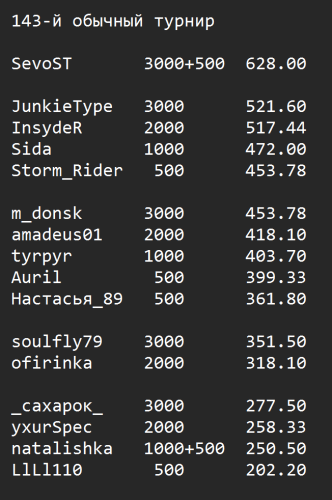 143-й обычный турнир [hide][img]https://i.ibb.co/S774LBZn/2026-02-15-19-11-10.png[/img][/hide] [hide][img]https://i.ibb.co/Csht5V31/143.png[/img][/hide] [hide][url="https://iimg.su/i/v7RCEO"][img]https://s5.iimage.su/s/15/th_uv7RCEOxgFIZkcQjBTpRtBN1KUQurFPGdsGH1zH0.png[/img][/url][/hide] [hide][url="https://iimg.su/i/vNRH9w"][img]https://s5.iimage.su/s/15/th_uvNRH9wxkq16qPndRe2wV0wX5jsBVkQPZi6ysHE7.png[/img][/url][/hide]