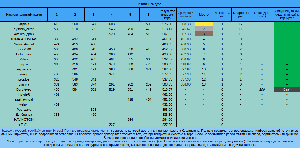 - список пользователей, которым запрещено участие в Квалотлоне и его турнирах.