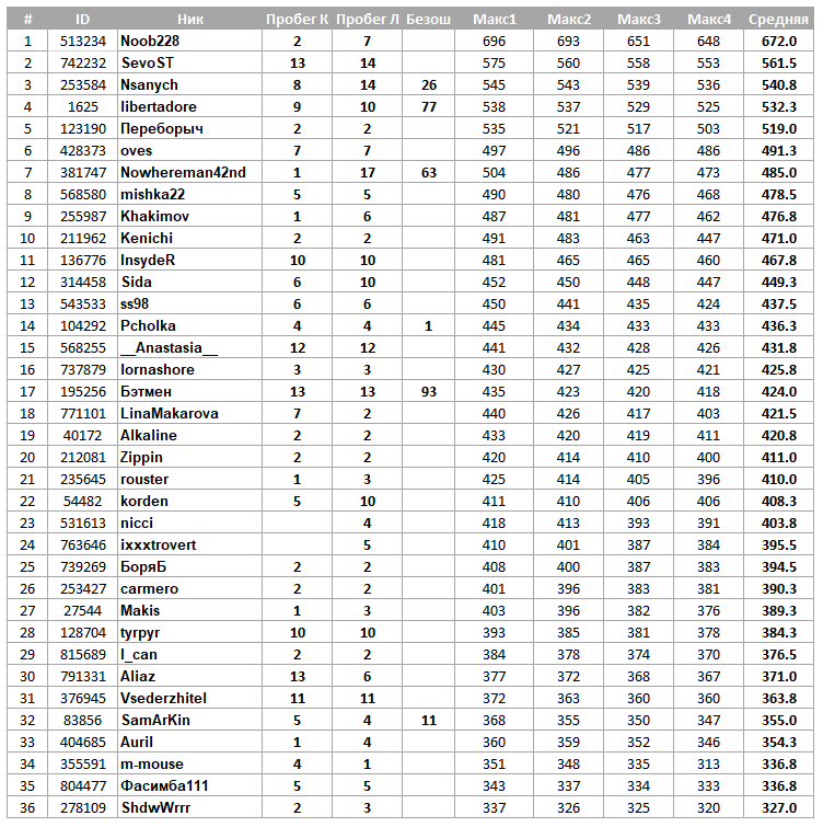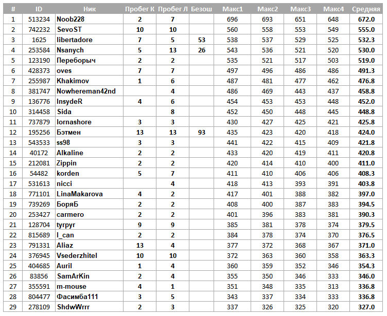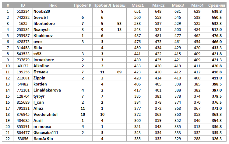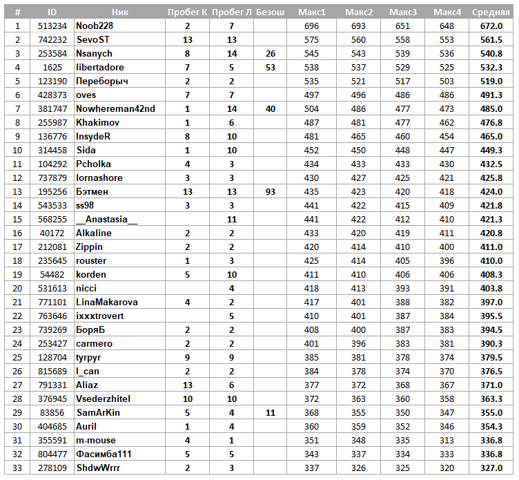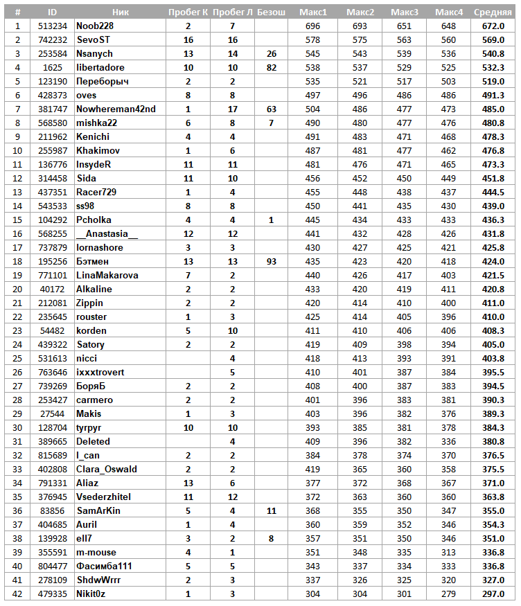 Зачёт по скоростиВ зачёт будут взяты 4 самые высокие скорости от каждого игрока за сутки.