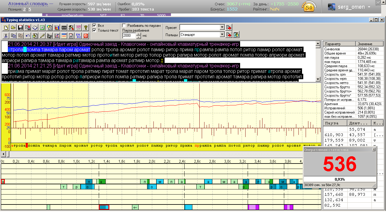 Попробовал еще раз попечатать до ста, но не получилось. 16 текстов не хватило. Средняя ~542 зн. Время, затраченное на набор: ~48 мин. Когда увидел по ТС это время, то во мне загорелась надежда, а вдруг еще не все потеряно, и кг отсчитывает время только фактического набора, хотя понимал, что данное обст-во не будет сооветствовать основ. критерию выдачи такой ачивы. Но попытался, ну не получилось.) _Lazer_ писал(а): Забрал абсолют.  Всеми пальцами набирал?) Последний раз отредактировано 21 июня 2014 в 22:53 пользователем serg_omen