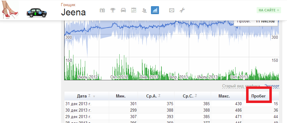 Ripcord писал(а): скрытый текст… Артем, а можно еще добавить в статистику функцию подсчета общего пробега за день? Всегда было интересно кто и сколько накатывает за день, вот, Хруст, например, катает по 300 текстов в день в обычном, это было для меня открытие. С Наступающим! так это же уже есть
