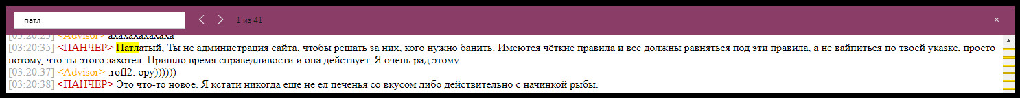 Galaad, ты говоришь, чтобы не было оффтопа. В данном случае мои слова про Унча — это не оффтоп. Это неизбежные аргументы. Потому что я тебе говорил, говорю и буду говорить дальше: невозможно рассматривать вопрос о блокировке конкретного пользователя, закрывая глаза на остальные жесточайшие нарушения других пользователей. Так не бывает, иначе это уже двуличность. Если блокировать Панчера, то блокировать всех других нарушителей. Унч — один из главных.Далее — ты говоришь, что я якобы покрываю нарушения и солидарен с ними. Это катастрофическая ложь, поэтому я начинаю все больше и больше думать, что у тебя с Унчем сговор. Ты вдруг внезапно появился из ниоткуда и начал сознательно топить исключительно одного человека — Панчера. И уже сказал тебе много раз, и скажу еще: я не поддерживаю никаких нарушений. Я лишь руководствуюсь тем, что говорит сам Панчер. Со слов Панчера, он не использует никаких запрещенных методов при отправке своих сообщений. Я не могу проверить эту информацию, поэтому ссылаюсь на его слова. Galaad писал(а): А вот оправдание спама и попытки объяснить что "никакого спама не было", вот это уже по теме, вот это уже интересно. Этот момент нужно оставить и зафиксировать. Ты можешь фиксировать абсолютно все что захочется. Всё это — твои фантазии, выдумки. Еще раз — я не одобряю никаких нарушений и призываю исключительно к порядку. И Унча призывал тоже много раз, но он не желает слышать ни меня, ни Тому Атомную, ни многих других игроков. В итоге его заблокировали на 7 суток. Кстати, это лояльное решение, как я полагаю. Потому что изначальная информация была о блокировке на 365 дней. Я бы при таком исходе наоборот радовался, а он в ответ лишь еще большей грязью поливает в Твиттере администрацию и модерацию. Напоминаю, что с 19.7.2020 у меня не было ни одного нарушения, ни одного бана и даже ни одного предупреждения. Если бы я поддерживал нарушения, вряд ли бы у меня была такая статистика. agile писал(а): Прямое оскорбление в адрес un4given, но почему-то существует на форуме уже больше двух недель :) Могу предположить, что пользователь поторопился на эмоциях написать неладное, а потом быстро это поправил. Напомню, что у Унча такая практика уже была. И у друзей его (например, у Just'a) тоже такая практика имеется. В итоге модератору пришлось корректировать один из ответов Джаста на форуме. Также я хочу у вас спросить, почему вы замечаете эти моменты, но не замечаете со стороны Унча: 1. Оскорбления, унижения в публичном виде игроков и их родителей. Причем в гигантских количествах. 2. Угрозы терроризировать проект (дело прошлое, но факт остается фактом), за что ему блокировали профиль. 3. Унижения тех, кто донатит, а также вандализм-призывы прекратить донаты. 4. За последние полгода у Унча около 25 банов (по моим подсчетам), у Пачнера и Jemcik'а вместе взятых — возможно, меньше. 5. Грубые оскорбления в адрес администрации и модерации. Например, сейчас у себя в Твиттере он унизил модератора словом «ПИААСИНА». Более того, я хочу сказать, что администрация и модерация даже чересчур лояльны к Анфогивену. Поэтому чем он или вы можете тут недовольствоваться — я не понимаю. Я бы на таком месте вообще молчал бы и благодарил, что мне дали лок на 7 суток, а не на целый год. С уважением, Advisor.