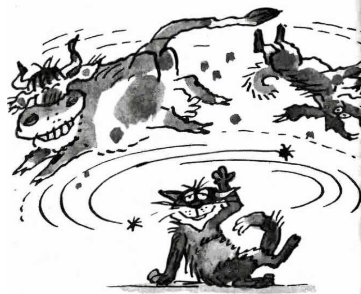 | 10 | 6 Збоку, під всохлим кущем ожини, настовбурчившись, стояв інший кіт і спостерігав за ним. Кіт був синього кольору, а в його очах проблискували рожеві вогники. -І куди це ти, рудий, поспішаєш, мов несамовитий? — зашипів він. Подібне шипіння прогнало б навіть кобру, але Туфо не втратив самовладання. -Біжу, щоб не посиніти від холоду! — ображено відказав він і крутнув хвостом. Ти ба, що діється: тільки-но вирішив вільно побігати в лісі — і раптом з'являється якийсь синій кіт і псує тобі настрій. |